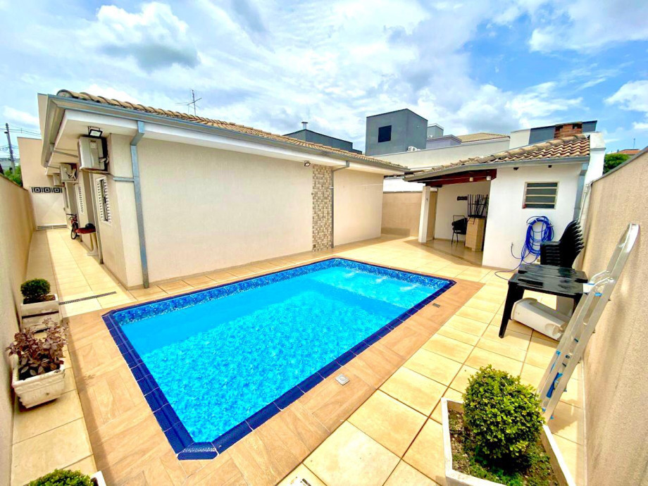 Casa terrea com linda area gourmet e com piscina para excelentes momentos em familia, quartos climatizados, cozinha completa em armarios, sala com pé direito duplo o que proporciona melhor luminosidade interna, home office . Garagem para dois carros cobertos e dfois descobertos, estuda permuta. Agende sua visita .